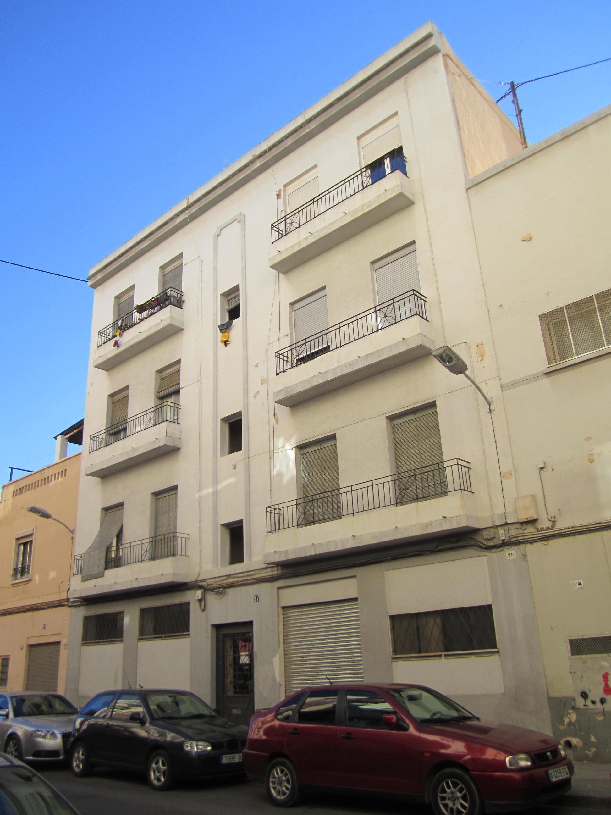 calle de sagunto, partida del llano de san bernardo, calle escultor piquer, número veintisiete, antes diecisiete. se compone de dos plantas bajas, con habitaciones encaradas. ocupa una total superficie de ciento cuarenta y cuatro metros cuadrados, formada por catorce metros de frontera por diez metros dos mil ochocientas cincuenta y ocho diezmilésimas de profundidad. linda; por frente, con dicha calle, por espaldas, con nave o cubierta de maria concepción conejero frau; por la derecha entrando, con casa de francisco giner vidal y por izquierda, con casas de florencio frías y victor sala navarro.