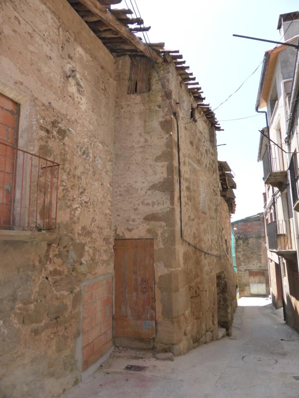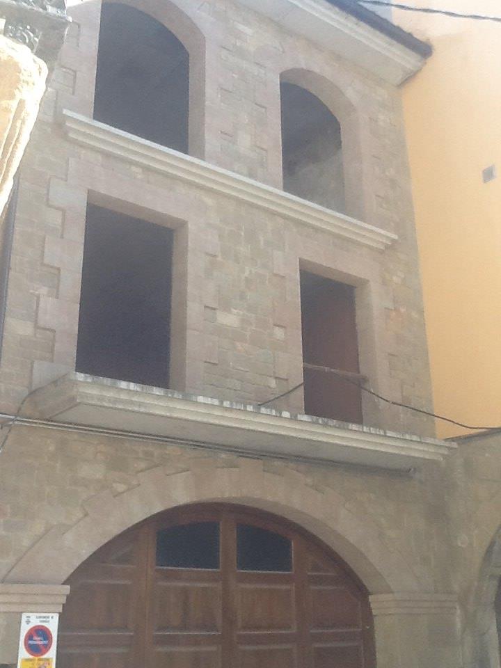 casa con un corral a ella unido, sita en sanaüja, en la calle del agua y también plaça major, señalada de número tres, compuesta de bajos y dos pisos, y comprende la casa veinticuatro metros de largo por cinco de ancho.